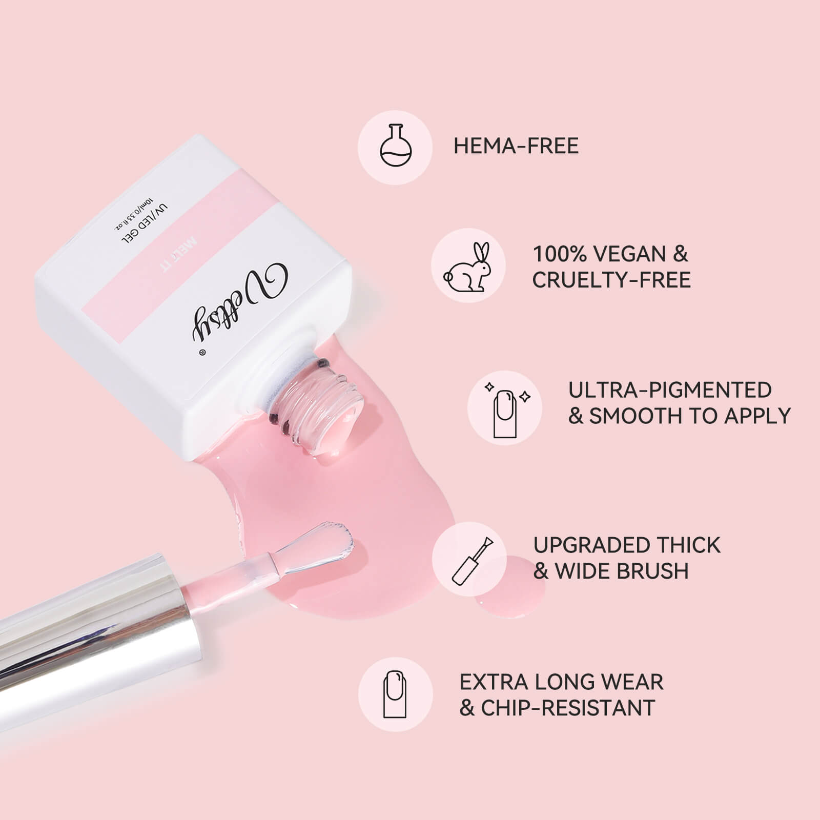 Do you want to wear the whole rainbow on your nails? If so, the 6 hema-free gels set-Rainbow with 6 vibrant colors will be your best choice. These opaque color gels apply super smoothly! You will love them after trying them!