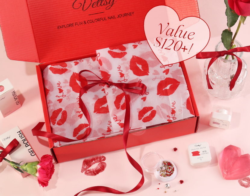Monthly Mini Box: A curated collection of 8-10 full-size newly released & hot selling Vettsy nail products for $25.99.
